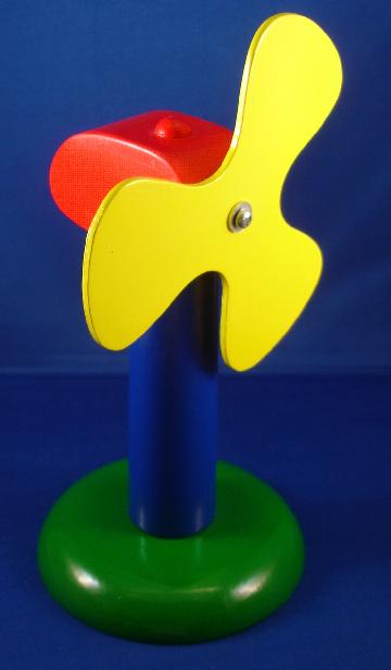 the windmill. Bright yellow rotor spins nicely and the red nacelle rotates