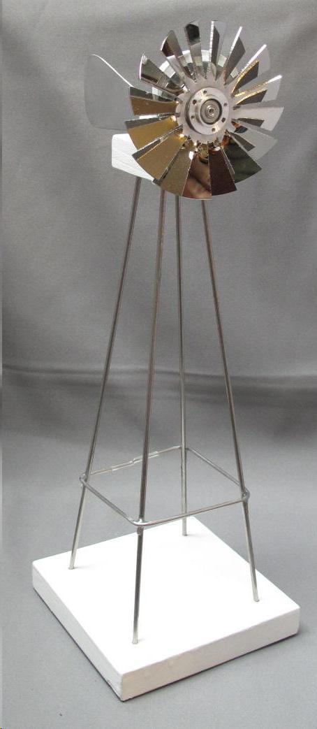 This 16.5 inch tall windmill's rotor turns in the wind or the breeze from